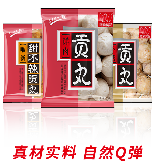 • 選擇蛋白質(zhì)含量及新鮮度高的豬后腿肉為原料,模擬手工捶打的打漿工藝,再經(jīng)煮制、冷卻、速凍工藝才可生產(chǎn)出自然脆彈的唯新貢丸,是居家佐餐、火鍋的美味食品。近年來(lái)我們還研發(fā)生產(chǎn)了香腸、蝦滑、魚丸、牛肉丸等大眾喜愛的家庭火鍋料速凍食品。